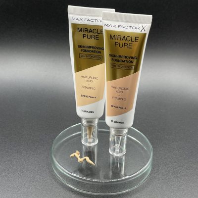MAX FACTOR verspricht uns genau das mit einer neuen Foundation, die 24h Hydration verspricht und die Hyaluron und Vitamin C enthält. Zusätzlich enthält sie noch einen Lichtschutzfaktor von 30 – bitte verzichtet trotzdem nicht auf einen angemessenen Sonnenschutz, denn die Menge an Foundation, die man aufträgt, enthält nicht genug Lichtschutzfaktor bei einem Tag in der Sonne, aber das ist ein anderes Thema.